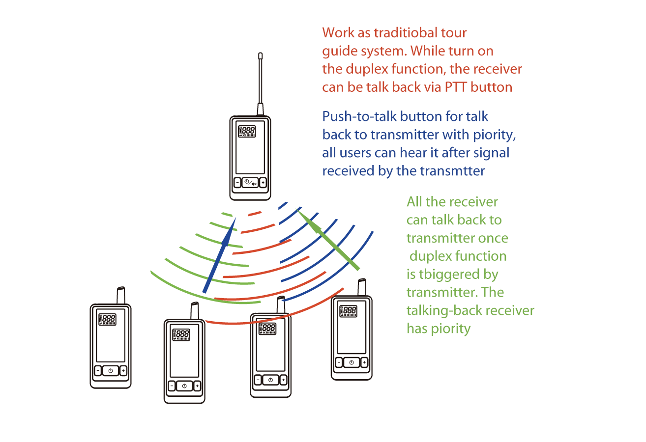 GTG-210 wireless tour guide system has a talk-back function. That make the tour guide more flexible Very easy for operating